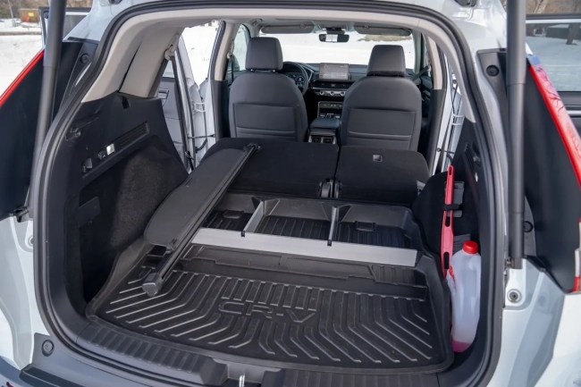 «Ляда» багажника відчиняється високо (адже японці це авто вже не побачать), а у відсік поміщається 567 л багажу. Якщо скласти спинки, то влізе вже 1634 л, хоча повністю рівна підлога не виходить. У європейських специфікацій немає запаски та докатки, виключно ремкомплект.