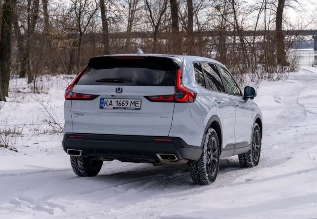 Ще одна технічне ноу-хау - у повнопривідної версії CR-V, як у нас на тесті, немає другого електромотора на задній осі - крутний момент передається за допомогою карданного валу. Однак не всі гібридні CR-V повнопривідні - бувають лише з переднім приводом. Цікаво, що такою є плагін-гібридна версія, яка в Україну ще не доїхала.